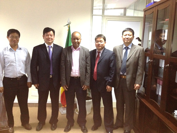 董事長王元旦(左二)、副總經理張周平(右一)、聶玉和(左一)、埃塞分公司經理王毓平(右二)與埃塞政府前副總理(現任埃塞糖業公司總經理)ABAY TSEHAY(左三)合影