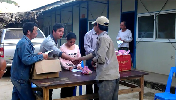 項目管理人員給越南員工送上春節禮品和慰問金
